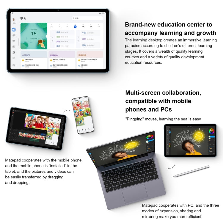 6. Special features: Exclusive education center, face unlock, multi-screen collaboration, parallel horizon, smart multi-window, eye protection mode.