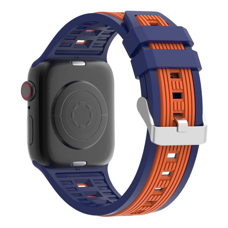 For Apple Watch 42mm / 41mm / 40mm / 38mm Two-Tone Vertical Stripe Silicone Watch Band(Navy Blue + Orange)
