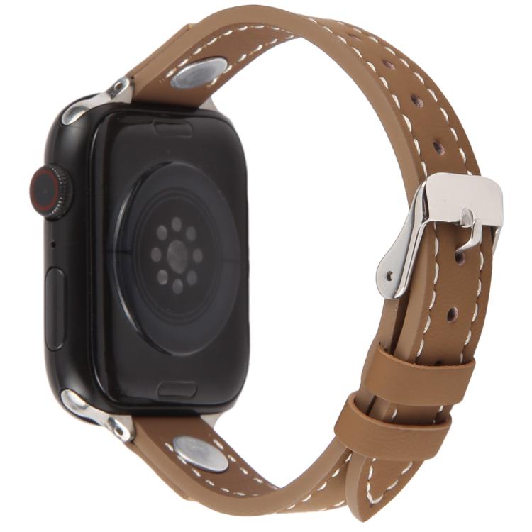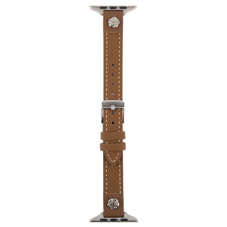 For Apple Watch 46mm / 49mm / 45mm / 44mm Rivet Camellia Skin Feel Microfiber Leather Watch Band(Dark Brown)