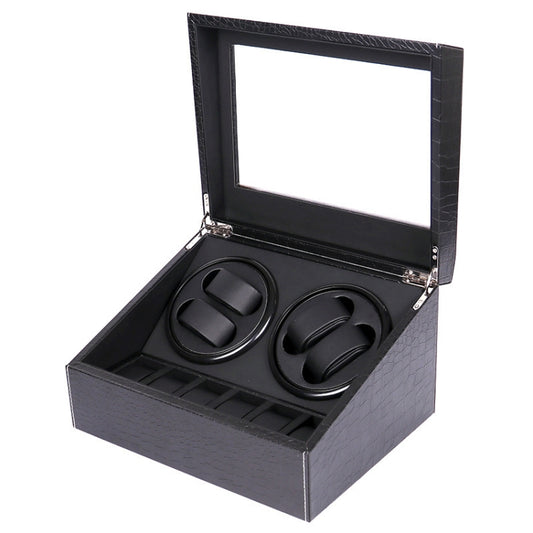 PU Leather 4+6 Double-Head Automatic Winding Motor Box Mechanical Watch Rotator, US Plug(Crocodile Pattern)