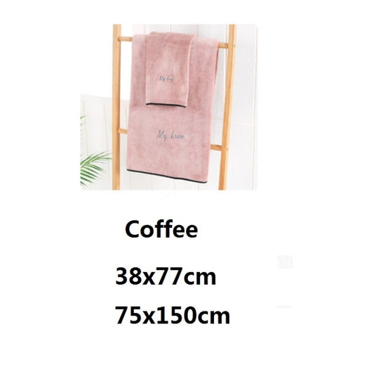 Soft And Thick Absorbent Fiber Bath Towel, Specification:Towel + Bath Towel(Coffee Color)