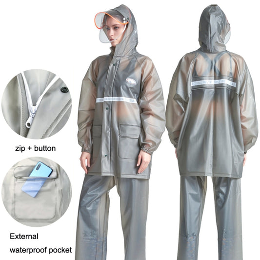 Adult Anti-Riot HD Double Brim Raincoat Rainpants Sets, Size: M(Water Gray)