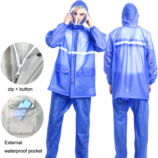 Adult Anti-Riot HD Double Brim Raincoat Rainpants Sets, Size: XL(Lake Blue)