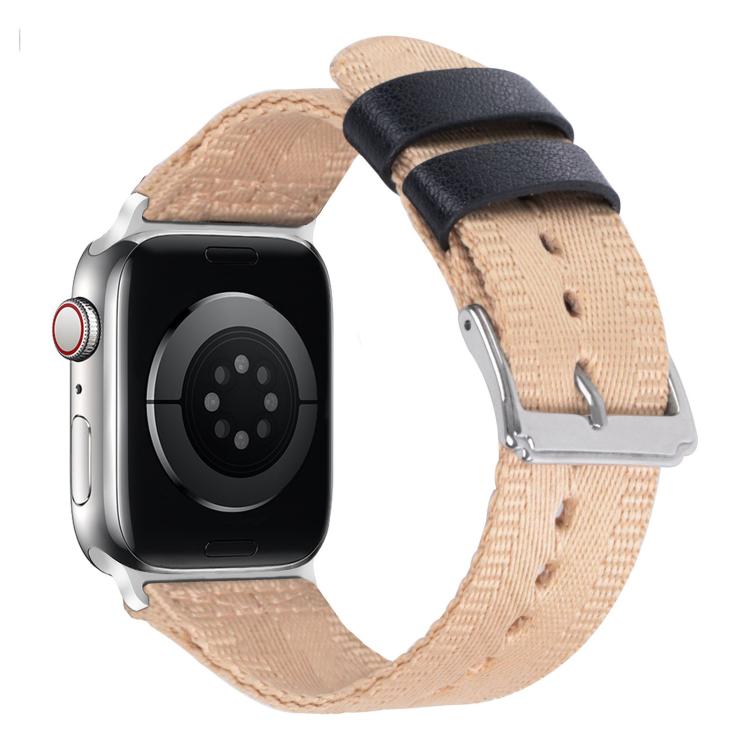 For Apple Watch 42mm / 41mm / 40mm / 38mm Quick Release Buckle Canvas Woven Nylon Watch Band(Khaki Color)