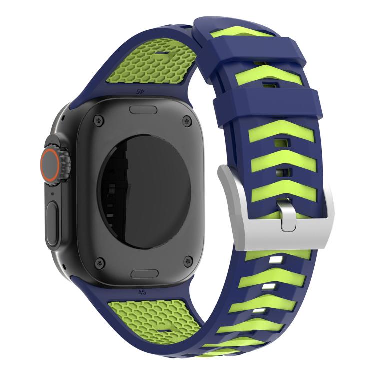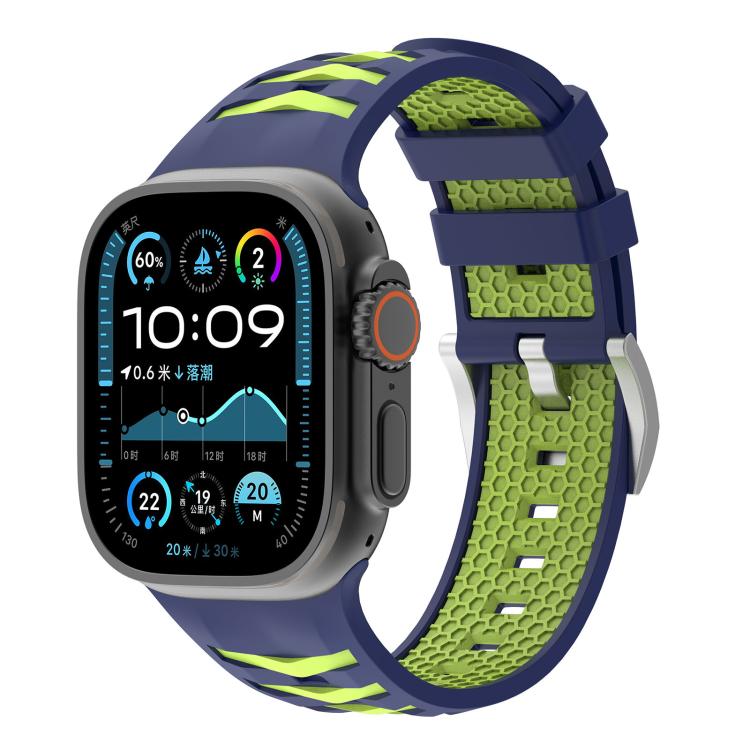 For Apple Watch 42mm / 41mm / 40mm / 38mm Tire Texture Two-Color Silicone Watch Band(Midnight Blue + Lime Green)