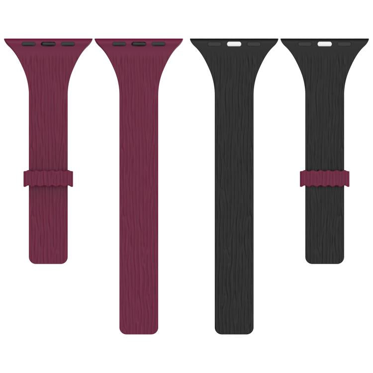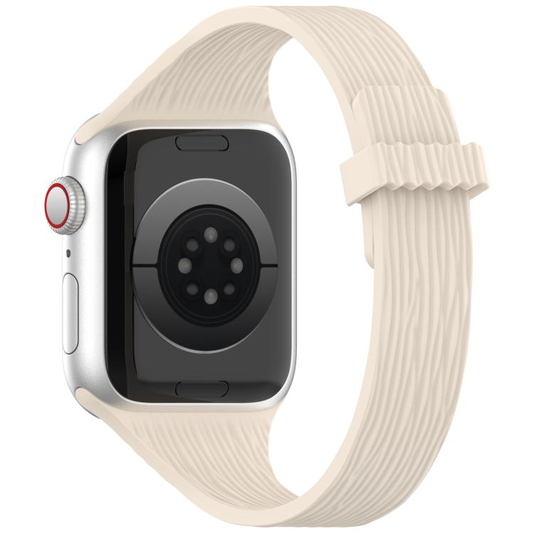 For Apple Watch 42mm / 41mm / 40mm / 38mm Water Wood Grain Small Waist Magnetic Silicone Watch Band(Light Apricot Color)