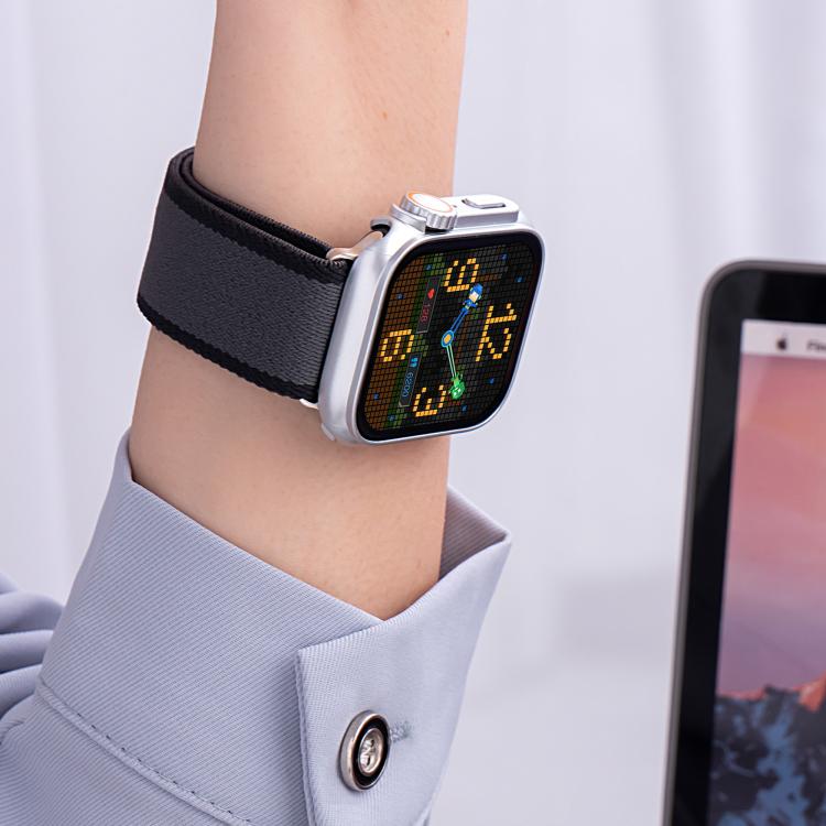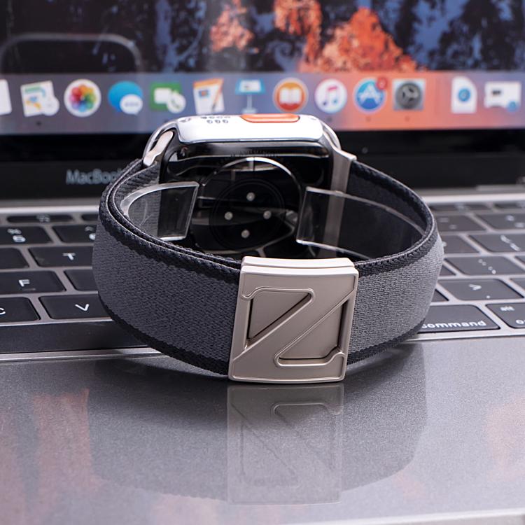 For Apple Watch 46mm / 49mm / 45mm / 44mm Z Shaped Magnetic Clasp Two Color Nylon Watch Band(Light Gray Dark Gray)