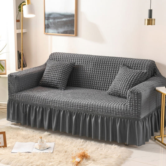 Living Room Stretch Full Coverage Skirt Style Sofa Cover, Size: Double M 145-185cm(One-color Grey)
