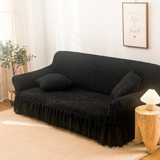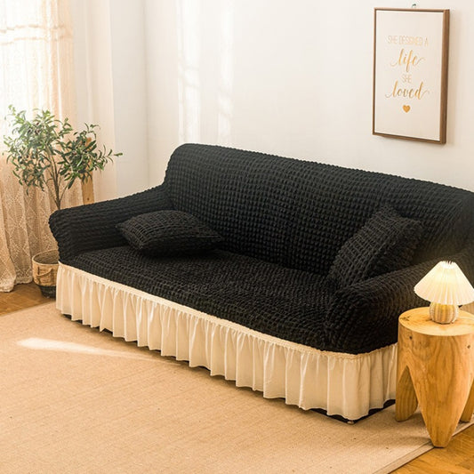 Living Room Stretch Full Coverage Skirt Style Sofa Cover, Size: Double M 145-185cm(One-color Black)