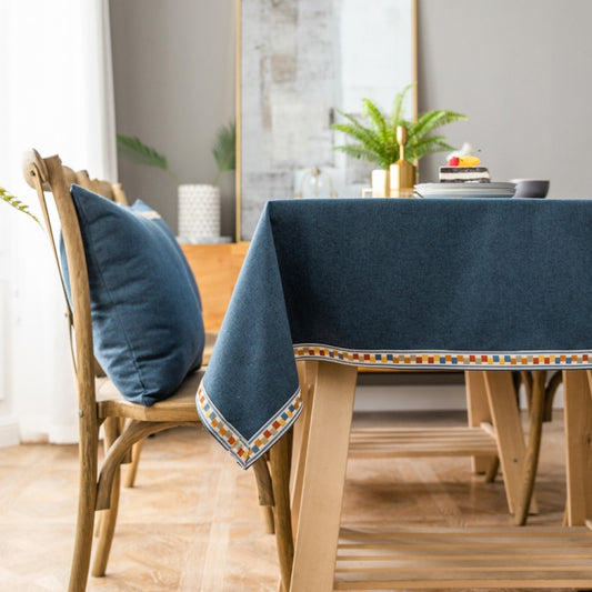 Solid Color Waterproof Tablecloth Linen Rectangular Tablecloth, Size:130x260cm(Blue)