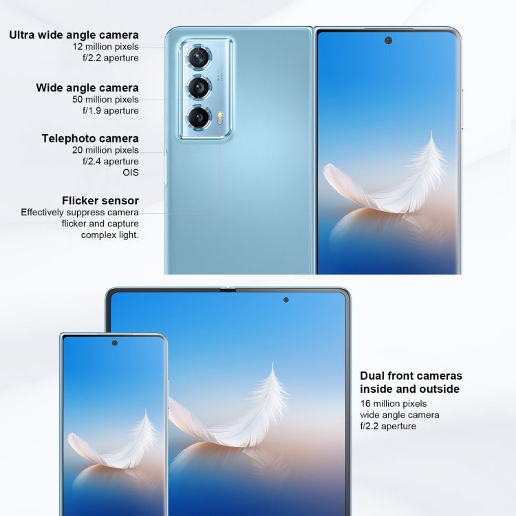 1. Rear camera: 50MP wide-angle camera (f/1.9 aperture) + 20MP telephoto camera (f/2.4 aperture, OIS optical image stabilization) + 12MP ultra-wide-angle camera (f/2.2 aperture)