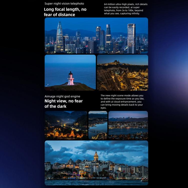 1. Rear : 50MP Super Night God Main (f1.6, OIS) + 50MP ultra-wide (f2.0, 122 FOV, 2.5cm macro) + 200MP Super Night God telephoto (3.7x optical zoom, f2.6, OIS, 100 digital zoom)