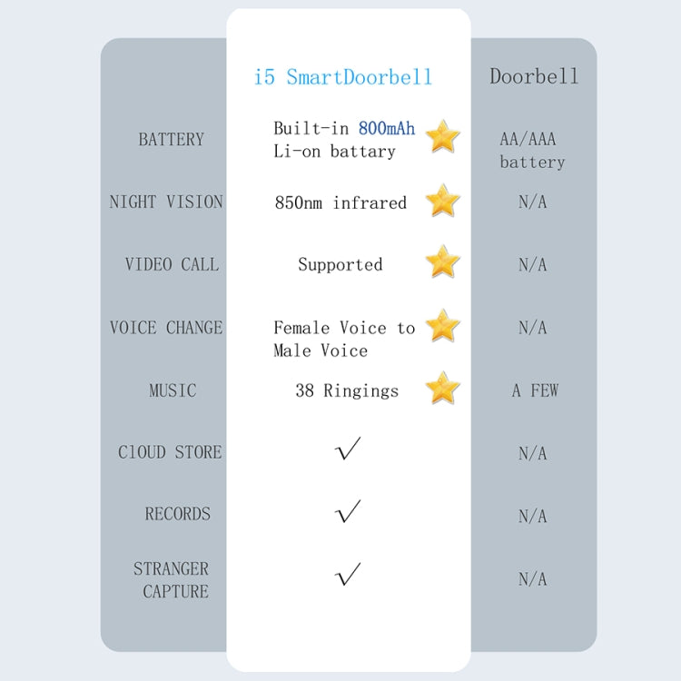 DoorBell i5 Smart Doorbell HD Wireless Bluetooth WiFi Security Camera Visual Doorbells Anti-theft Support Bidirectional Voice Intercom (White)