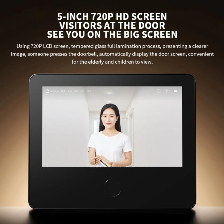 5. 5 inch 720P HD Screen: Features a clear 720P LCD screen with tempered glass full lamination process, automatically displaying the outside view when the doorbell is pressed, convenient for all family members.