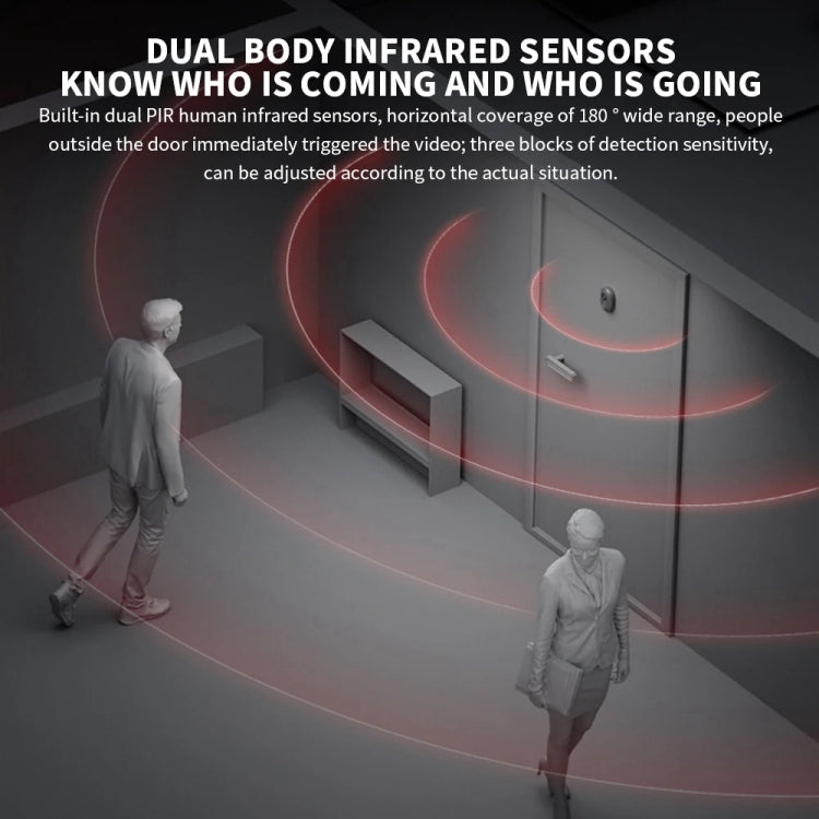 3. 180 degrees Wide Angle Lens: Offers a broad field of view with minimal blind spots, ensuring better coverage and security outside the door.