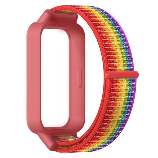 For Xiaomi Smart Band 9 Active / Redmi Band 3 xDfind Plastic Cover Integrated Nylon Loop Watch Band(Rainbow)