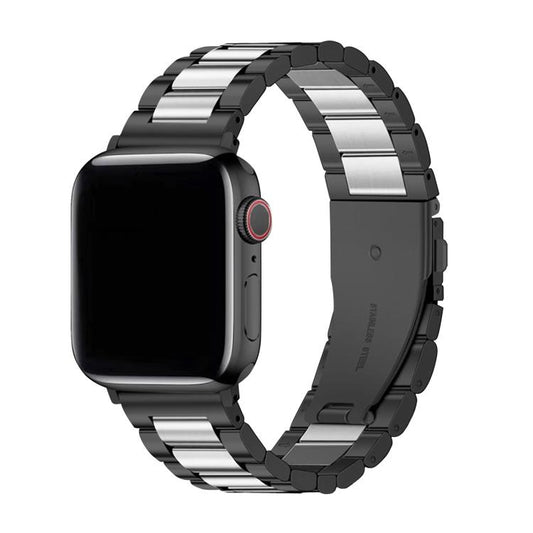 For Apple Watch Series 44mm Three Beads Stainless Steel Watch Band with 3D Curved Film(Black Silver)
