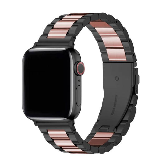 For Apple Watch Series 44mm Three Beads Stainless Steel Watch Band with 3D Curved Film(Black Rose)