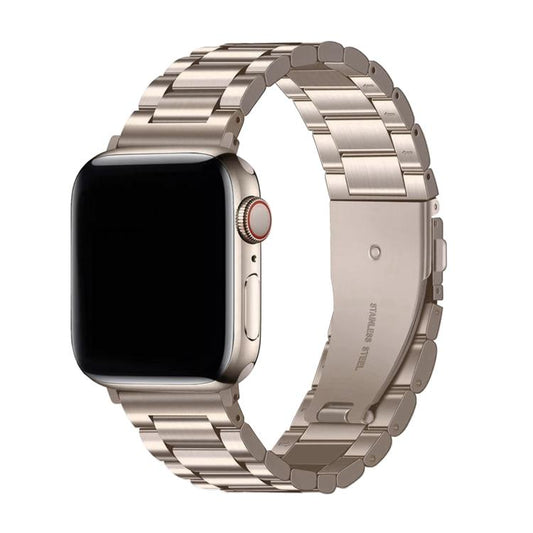 For Apple Watch Series 44mm Three Beads Stainless Steel Watch Band with 3D Curved Film(Starlight)