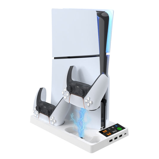 For PS5 Slim iplay HA-8006 Console Multifunctional Cooling Dock Handle Dual Charging Stand Handle Headphone Organizer(White)
