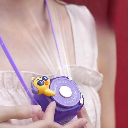 Givelong Cute Cool Pet DJ Lanyard Small Fan USB Rechargeable Compact Portable Bladeless Neck Fan(Cool Duck)
