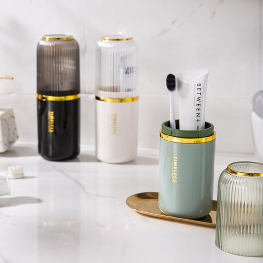 Transparent Toothbrush Travel Container Toothpaste Storage Cup Box Organizer 3-in-1 White