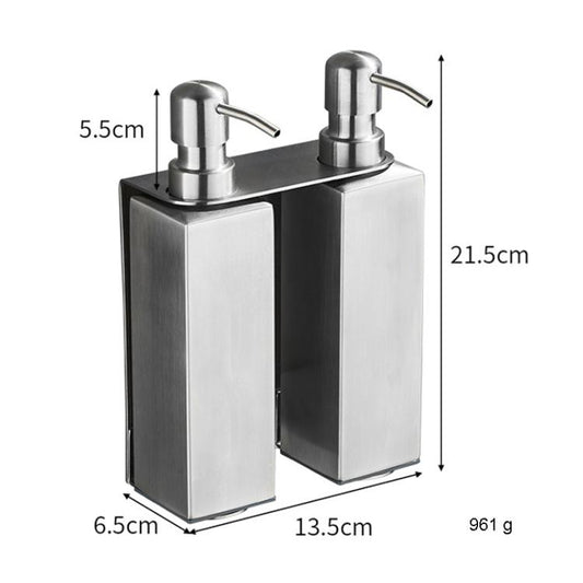 Hotel Stainless Steel Soap Dispenser Home Wall Mounted No Punch Press To Soap Bottle, Style: Square 2 Barrel