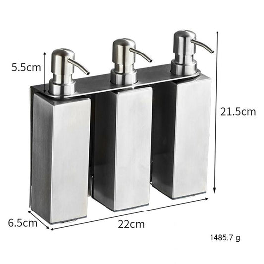 Hotel Stainless Steel Soap Dispenser Home Wall Mounted No Punch Press To Soap Bottle, Style: Square 3 Barrel