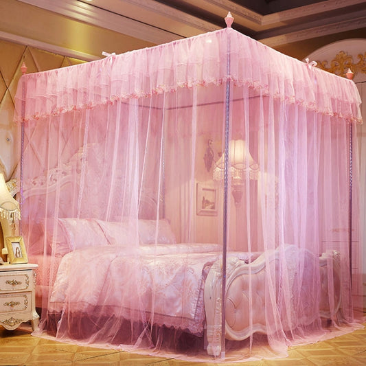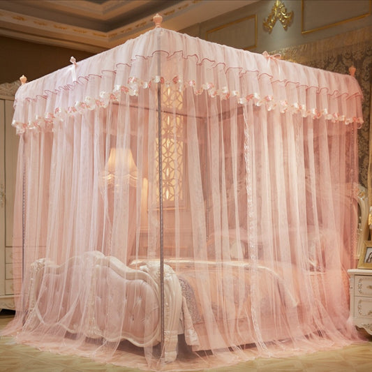 Palace Style Encryption Floor-standing Stainless Steel Three-door Mosquito Net, Specification:25 mm Bracket, Size:180x220 cm(Pink)