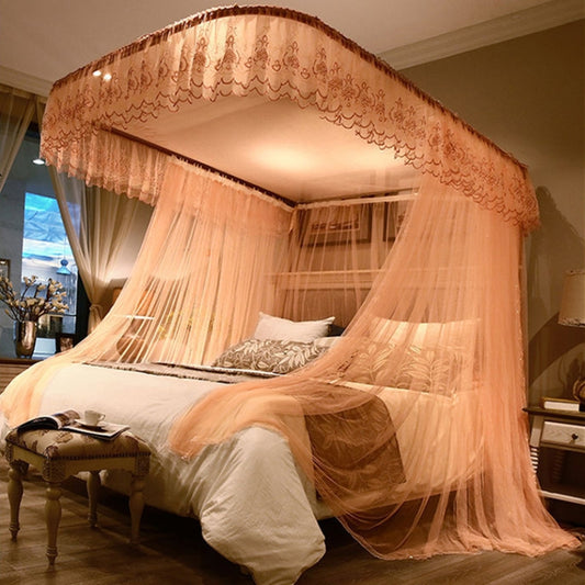 Palace Style Encryption Floor-standing Stainless Steel Three-door Mosquito Net, Specification:25 mm Bracket, Size:180x220 cm(Yellow)