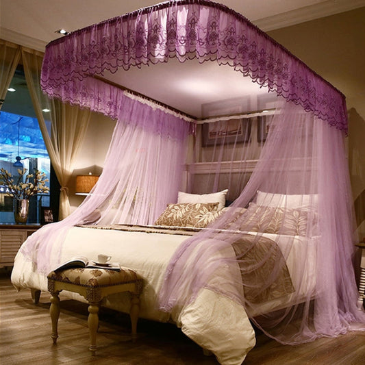 Palace Style Encryption Floor-standing Stainless Steel Three-door Mosquito Net, Specification:25 mm Bracket, Size:120x200 cm(Purple)