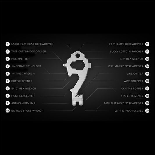 20 in 1 Multi-function EDC Tool Key Ring Bottle Opener Screwdriver Multi-purpose Outdoor Mini Tool