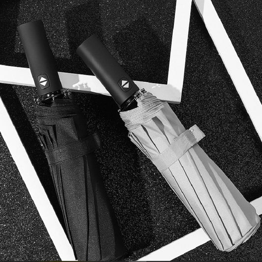 Extra Large Reinforced 12 Bone Automatic Double Folding Rain And Sunny Dual-use Umbrella Personality And Creativity(Gray)