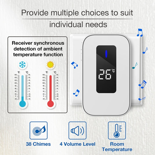 C303B One to One Home Wireless Doorbell Temperature Digital Display Remote Control Elderly Pager, EU Plug(White)