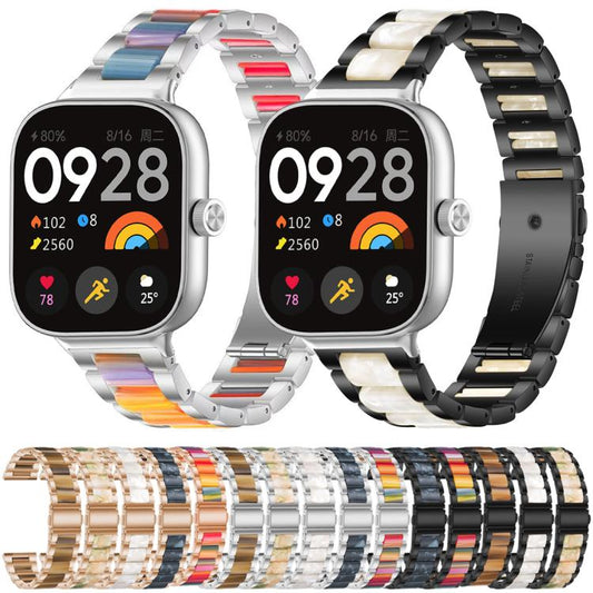 For Xiaomi Smart Band 9 Pro/8 Pro/Redmi Watch 5/4 xDfind Three Beads Metal Resin Watch Band(Black Brown)