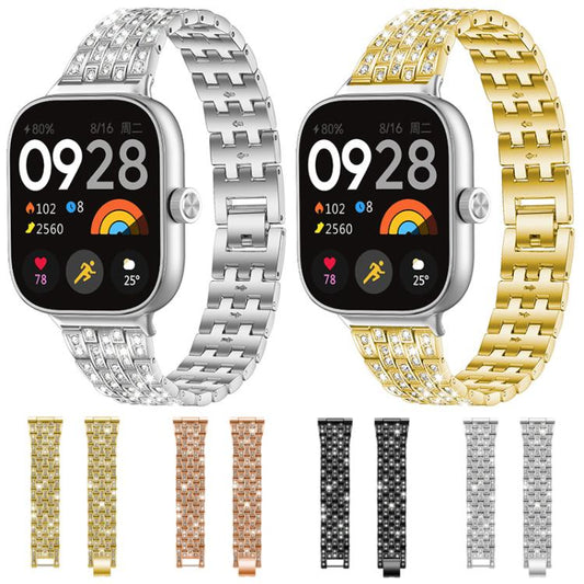For Xiaomi Band 9 Pro/8 Pro/Redmi Watch 6/5/4 xDfind Five Beads Full Diamond Metal Watch Band(Silver)