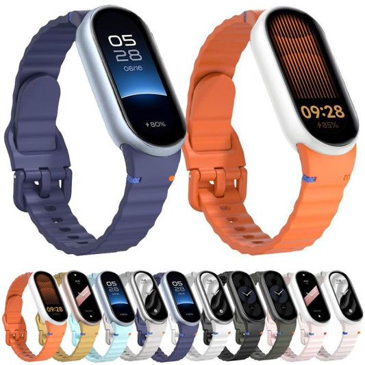 For Xiaomi Smart Band 10 / 9 / 8 Wavy Grain Stitched Silicone Watch Band(Light Gray)
