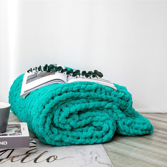 Handmade Thick Wool Knitted Blanket Sofa Chenille Stick Knitted Blanket, Size: 80 x 100 CM(Green)