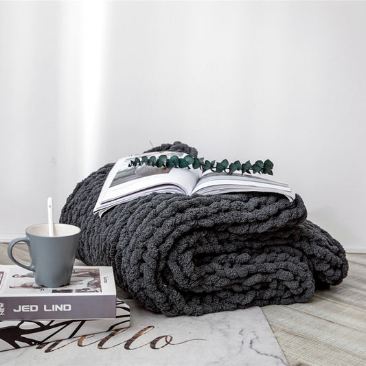 Handmade Thick Wool Knitted Blanket Sofa Chenille Stick Knitted Blanket, Size: 80 x 100 CM(Dark Gray)