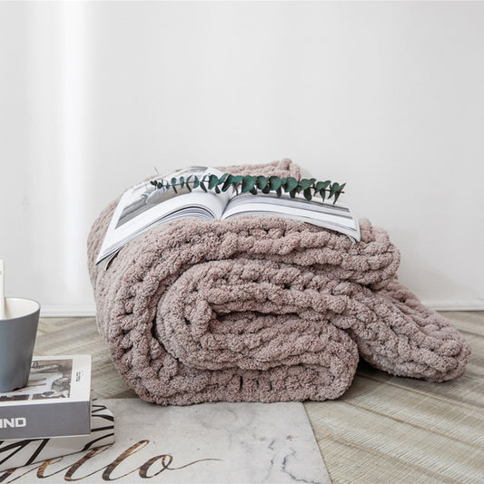 Handmade Thick Wool Knitted Blanket Sofa Chenille Stick Knitted Blanket, Size: 80 x 100 CM(Pink)