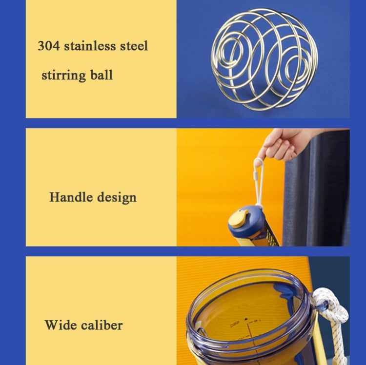 550ml Stainless Steel Stirring Ball Plastic Water Cup With Scale Portable Sports Handle Water Cup Shaking Cup( White)