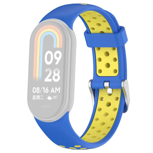 For Xiaomi Smart Band 10 / 9 / 8 xDfind Metal Plug Two Color Silicone Watch Band(Blue Yellow)