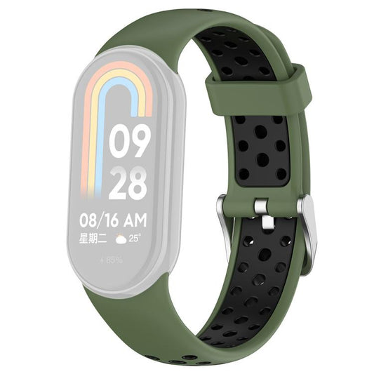 For Xiaomi Smart Band 10 / 9 / 8 xDfind Metal Plug Two Color Silicone Watch Band(Army Green Black)