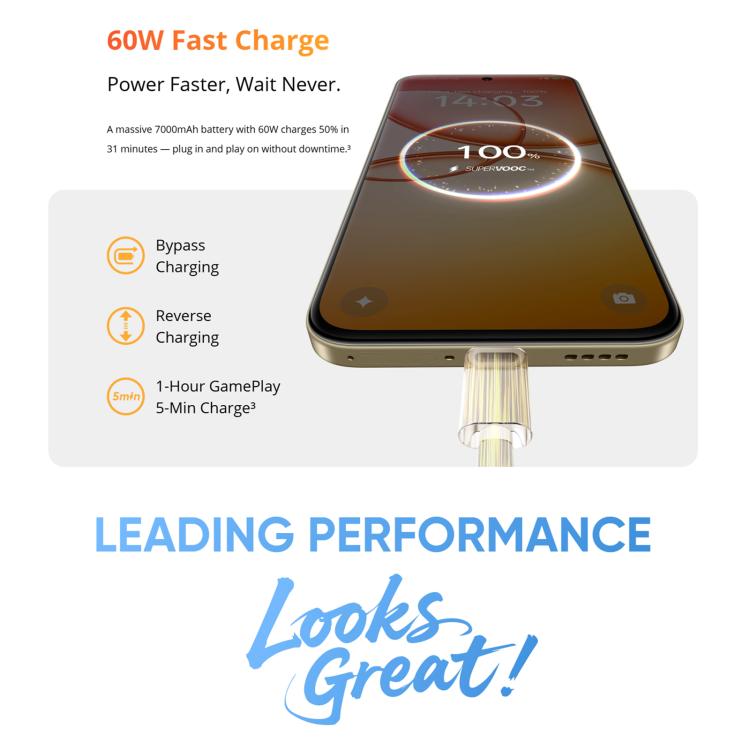 2. Fast charging: Support, 60W, with standard 80W flash charging adapter