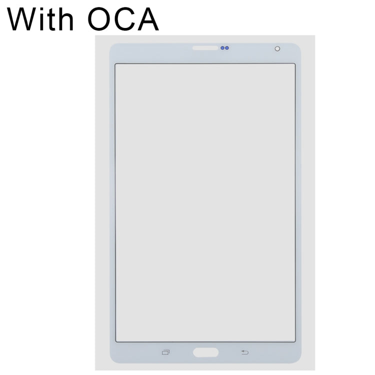 1. Replacement front screen outer glass lens with OCA optically clear adhesive for Samsung Galaxy Tab S 8.4 LTE / T705.