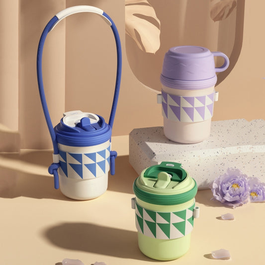 450ml 316 Stainless Steel Thermos Cup Three-purpose Straw Direct Drinking Coffee Cup(Lavender Purple)
