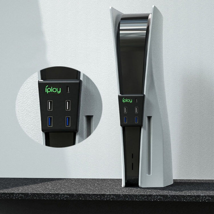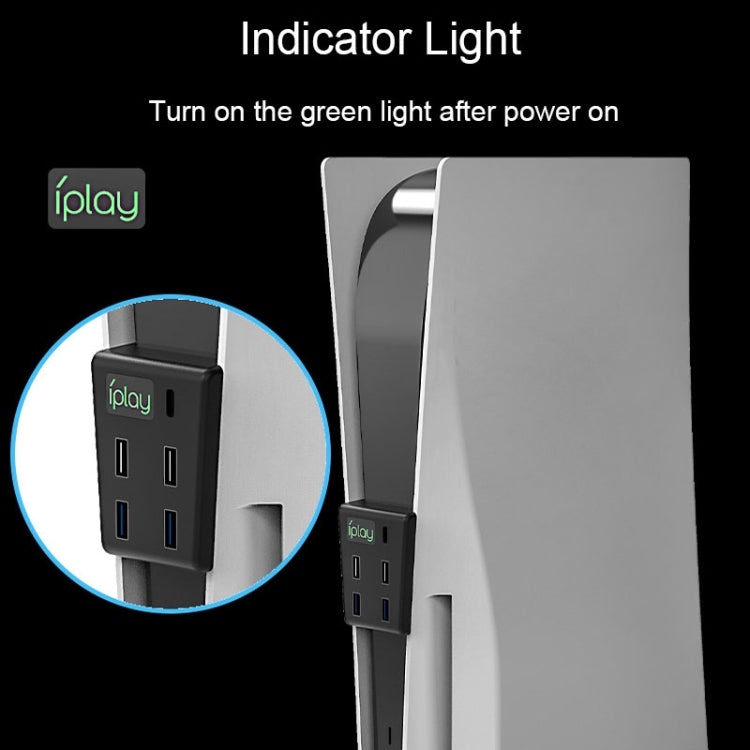 iplay HBP-308 For Sony PS5 5 in 1 Game Console USB3.0 HUB Connection Transmission Extender(Black)