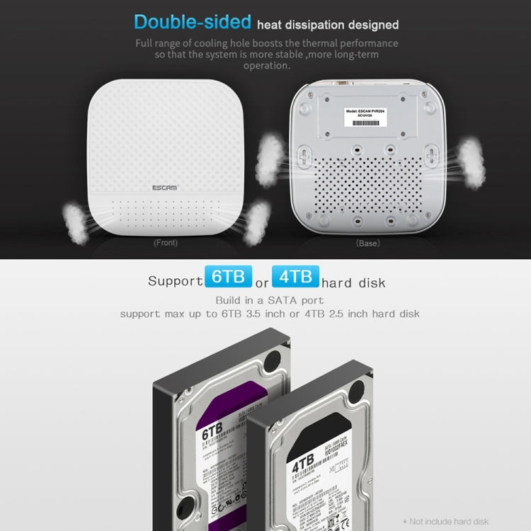 ESCAM PVR204 1080P 4CH+2CH ONVIF NVR Digital Video Recorder with 2CH Cloud Channel for IP Camera System (White)