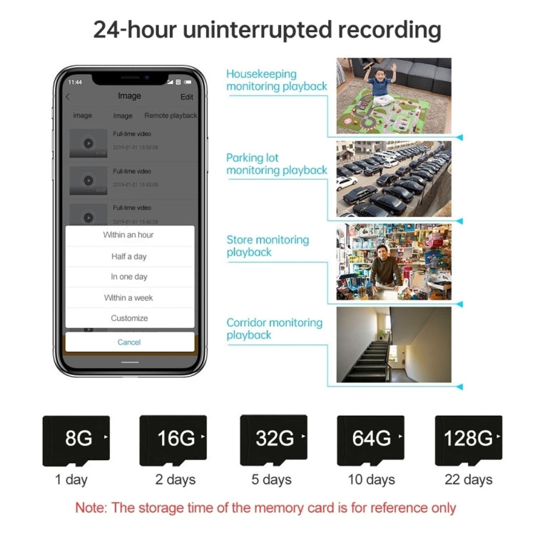 4. Recording: When the memory capacity is full, the camera will automatically delete the oldest old files, and over and continue recording, without dropping frames or missing seconds, and completely recording every frame of wonderful video.