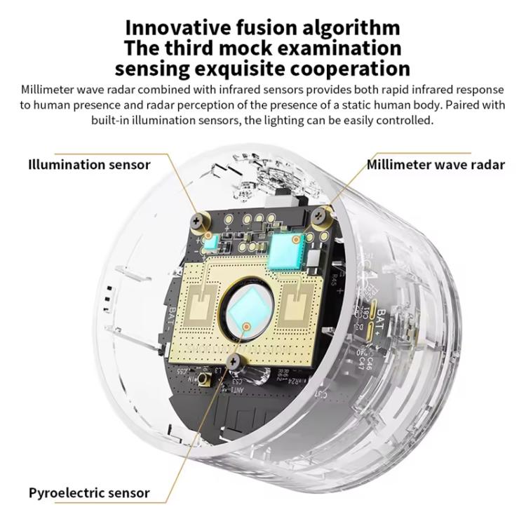 4. 3-mode Sensing Coordination: Millimeter wave radar combined with infrared sensors, both infrared for quick response to someone and radar to sense the presence of a static human body. With the built-in light level sensor, controlling the light is easy.